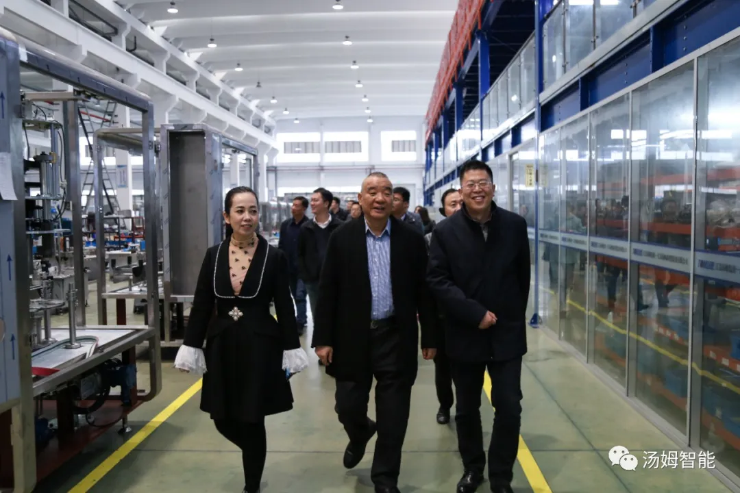 在江蘇湯姆集團董事長(cháng)湯建華,湯姆森總經(jīng)理王芳,集團財務(wù)總監吳芳的陪同下,陳區長(cháng)一行參觀(guān)了湯姆集團的科技展覽館、重點(diǎn)參觀(guān)了專(zhuān)利墻和榮譽(yù)墻,以及湯姆集團的樣板車(chē)間和一期二期100畝生產(chǎn)基地。董事長(cháng)湯建華向陳區長(cháng)介紹了湯姆集團的發(fā)展,重點(diǎn)闡述了在智能制造上面的科研、創(chuàng )新、以及在客戶(hù)現場(chǎng)的使用案例。